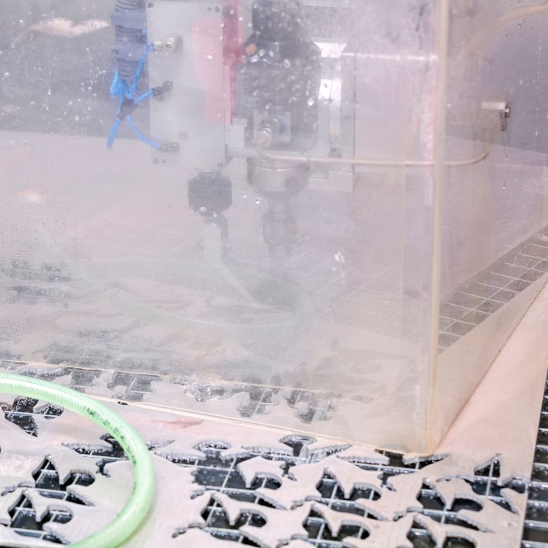 Trio Stone, su jeti teknolojisi ile sarı, bakır ve pirinç gibi yumuşak metalleri ısı etkisi olmadan ve yüzey kalitesini koruyarak keser. Bu metaller, süsleme elemanları, tabela parçaları, sanatsal objeler ve mimari detaylarda sıkça kullanılır. Trio Stone’un tecrübeli kadrosu, desenli veya yazılı kesim taleplerini hassasiyetle karşılar. Metalin estetik görünümünü bozmadan yapılan bu kesimler, her projede zarif ve profesyonel sonuçlar sunar.